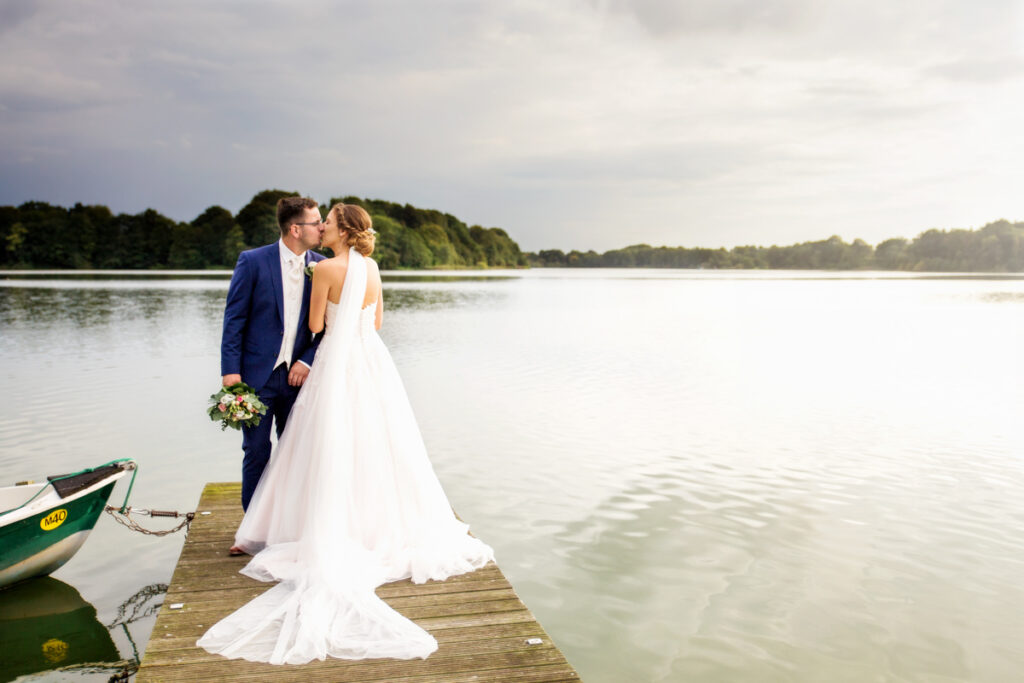 Hier sind wir danach noch nach Mözen zum Mözener See gefahren. Direkt auf dem Bootssteg und an der Badestelle hatten wir nach der Kirche zu Todesfelde  und vor der Feier im Wirtshaus Oering noch Zeit wunderschöne Portrait Bilder auf dem Bootssteg zu machen. Der liebe Wettergott hatte auch Erbarmen und zeigte uns noch einen kleinen Sonnenuntergang.